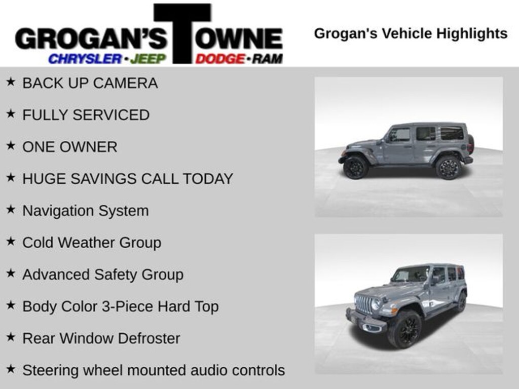 BACK UP CAMERA, FULLY SERVICED, ONE OWNER, HUGE SAVINGS CALL TODAY, 2.0L I4 DOHC, Adaptive Cruise Control w/Stop, Advanced Brake Assist, Advanced Safety Group, Alloy wheels, Apple CarPlay/Android Auto, Auto High Beam Headlamp Control, Body Color 3-Piece Hard Top, Cold Weather Group, Freedom Panel Storage Bag, Full Speed Forward Collision Warning Plus, Garage door transmitter, Heated door mirrors, Heated Front Seats, Heated Steering Wheel, Illuminated entry, Jeep Trail Rated Kit, Navigation System, ParkSense Rear Park Assist System, ParkView Rear Back-Up Camera, Rear Window Defroster, Rear Window Wiper/Washer, Remote keyless entry, Remote Proximity Keyless Entry, Remote Start System, Steering wheel mounted audio controls. Odometer is 20965 miles below market average!